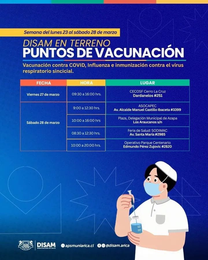 Noticias Pais Salud Vacunarse es cuidarte y protegen a quienes te rodean Aurorex marzo 23, 2026 0 Acerca del autor Aurorex Author Ver todas las entradas Navegación de entradas Anterior: Panorama del fin de semanaSiguiente: Arica dará un gran paso en el tenis: construirán complejo tenístico de estándar internacional 🎾 Deja una respuesta Cancelar la respuestaTu dirección de correo electrónico no será publicada. Los campos obligatorios están marcados con *Comentario * Nombre * Correo electrónico * Web Guarda mi nombre, correo electrónico y web en este navegador para la próxima vez que comente. Historias relacionadas Pais Panoramas Panorama del fin de semana Aurorex marzo 20, 2026 0 Deportes Noticias Pais 🔥🏆 ¡Arica hace historia! Van por el Mundial tras podio internacional Aurorex marzo 19, 2026 0 Deportes Noticias 🥋 Dojo HOSHI KAN brilla en el Campeonato Nacional de Karate WKF Aurorex marzo 19, 2026 0