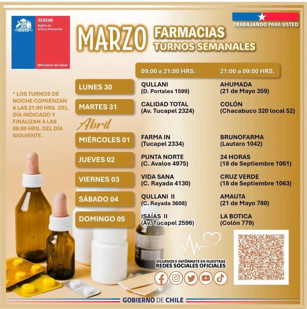 Noticias Salud 馃搮 Atenci贸n del Registro Civil y farmacias de turno en Arica esta semana Aurorex marzo 30, 2026 0 Acerca del autor Aurorex Author Ver todas las entradas Navegaci贸n de entradas Anterior: Detenido por tr谩fico de drogas en Arica: llevaba ketamina adosada a su cuerpoSiguiente: 聽Atenci贸n del Registro Civil y farmacias de turno en Arica esta semana Deja una respuesta Cancelar la respuestaTu direcci贸n de correo electr贸nico no ser谩 publicada. Los campos obligatorios est谩n marcados con *Comentario * Nombre * Correo electr贸nico * Web Guarda mi nombre, correo electr贸nico y web en este navegador para la pr贸xima vez que comente. Historias relacionadas Cultura Panoramas Salud 聽Atenci贸n del Registro Civil y farmacias de turno en Arica esta semana Aurorex abril 6, 2026 0 Noticias Detenido por tr谩fico de drogas en Arica: llevaba ketamina adosada a su cuerpo Aurorex marzo 30, 2026 0 Noticias Pais Salud Vacunarse es cuidarte y protegen a quienes te rodean Aurorex marzo 23, 2026 0